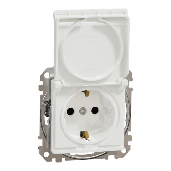 Potinkinis kištukinis lizdas su įžeminimu ir dangteliu, baltas, spyruokliniai gnybtai, IP20, Sedna Design SDD111024